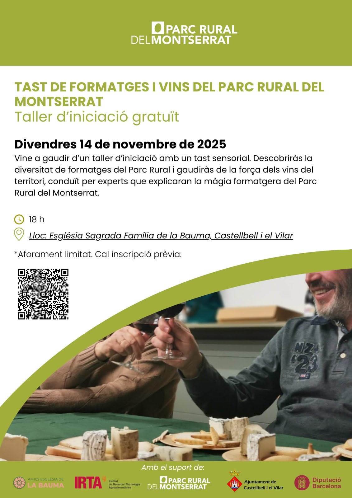 Activitat gratuïta a l’Església Sagrada Família de la Bauma El divendres 14 de novembre es programa a Castellbell i el Vilar un tast d’iniciació gratuït als formatges i vins de